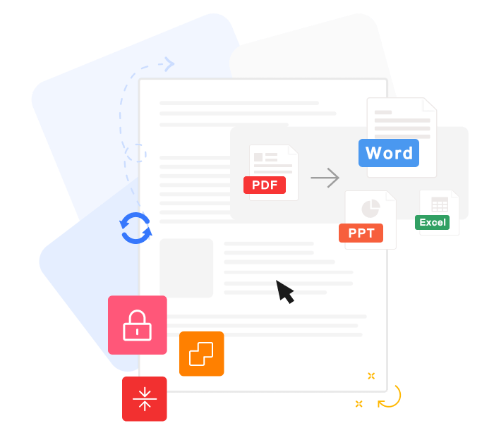 支持PDF、Word、PPT、Excel、图片等文件的批量互转, 提供PDF合并压缩、拆分、加密、解密、添加水印、页面 提取、图片提取功能