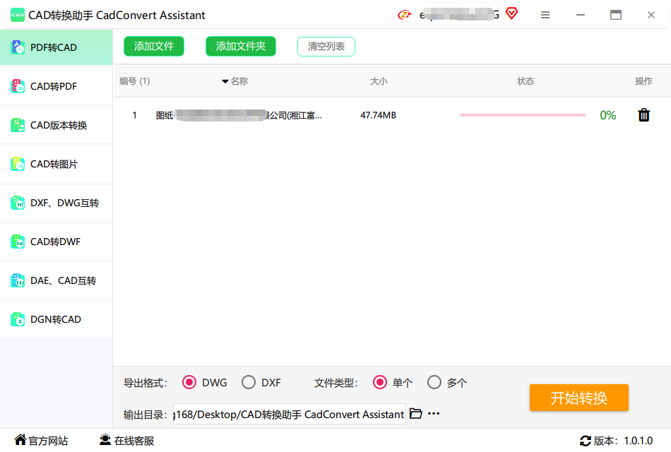 支持将dxf、dwg格式转换为pdf格式,支持批量处理,转换速度快,高保真转换
