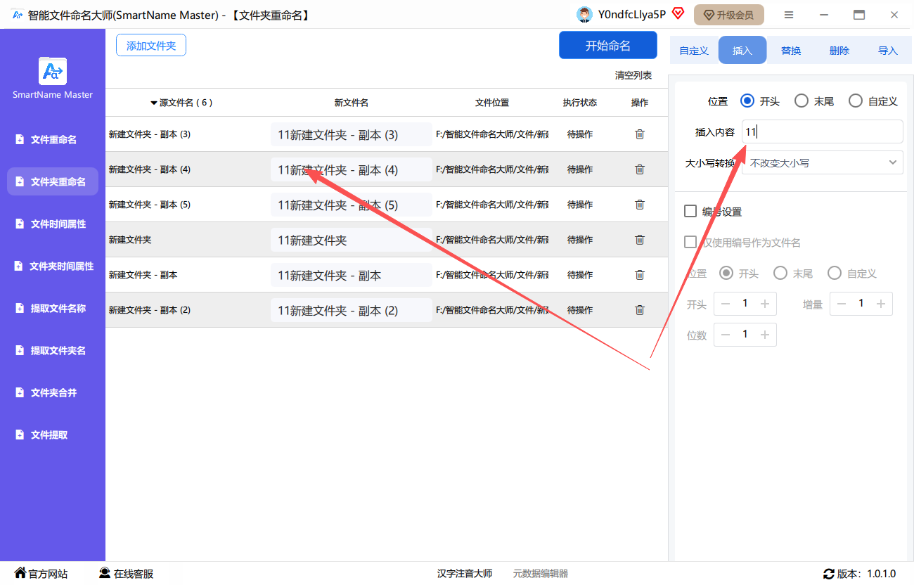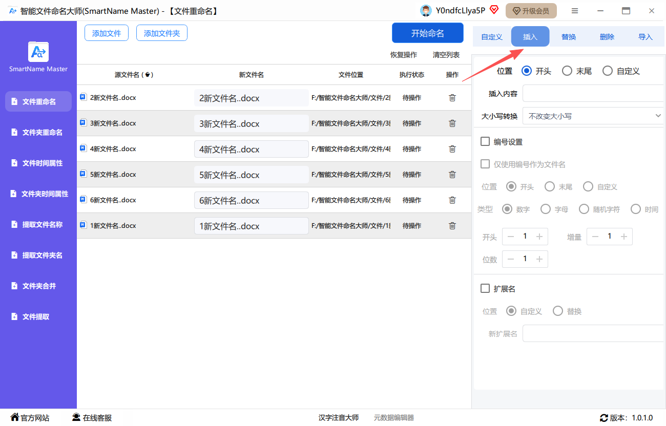 第三步、根据需要输入想要插入的新字符,左侧可以预览新文件名。