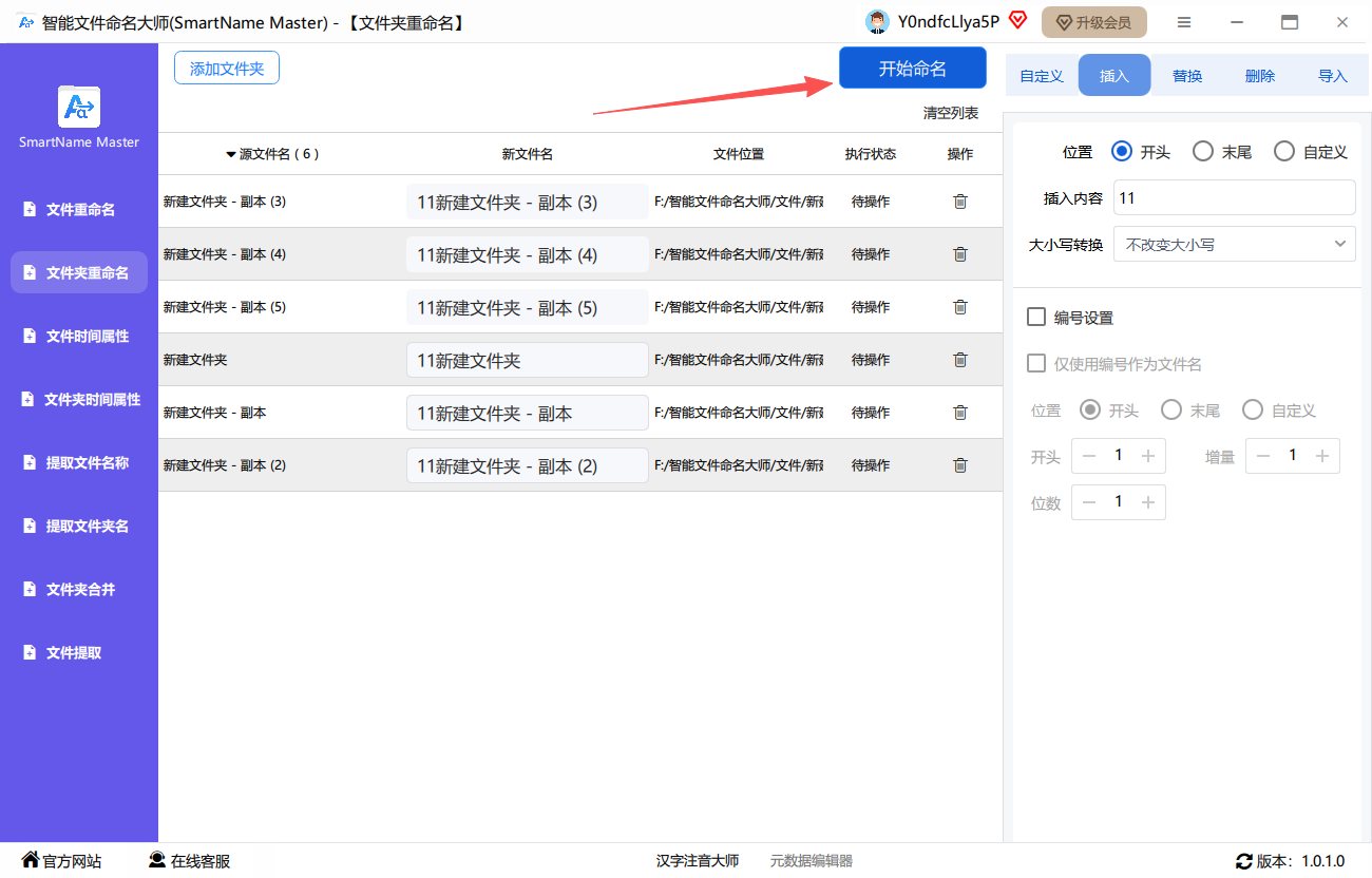第五步、设置完成后,点击右上角的“开始命名”。