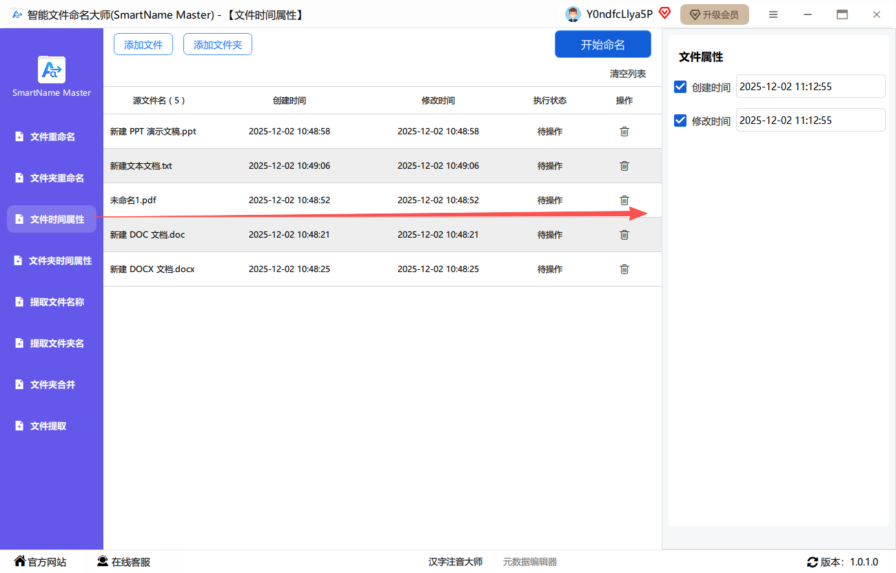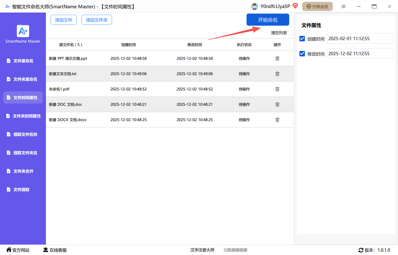 第一步、点击选择“文件时间属性”功能,并将文件批量上传到软件中。