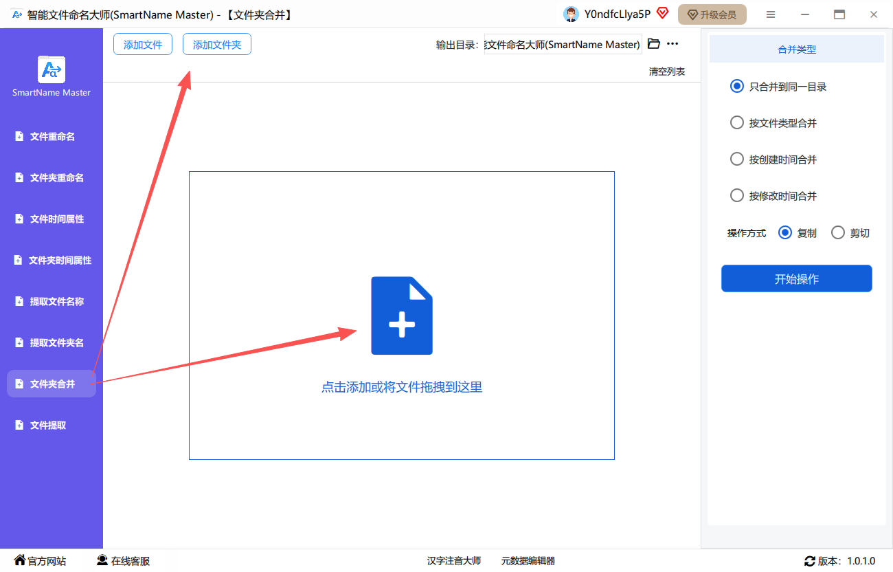第一步、点击选择“文件夹合并”功能,并且将文件夹批量上传进来。