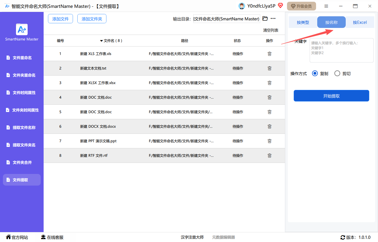 文件夹里文件众多,包含了各种格式,文件命名大师可以帮助我们提取出我们想要的文件,更快的筛选出想要的文件。