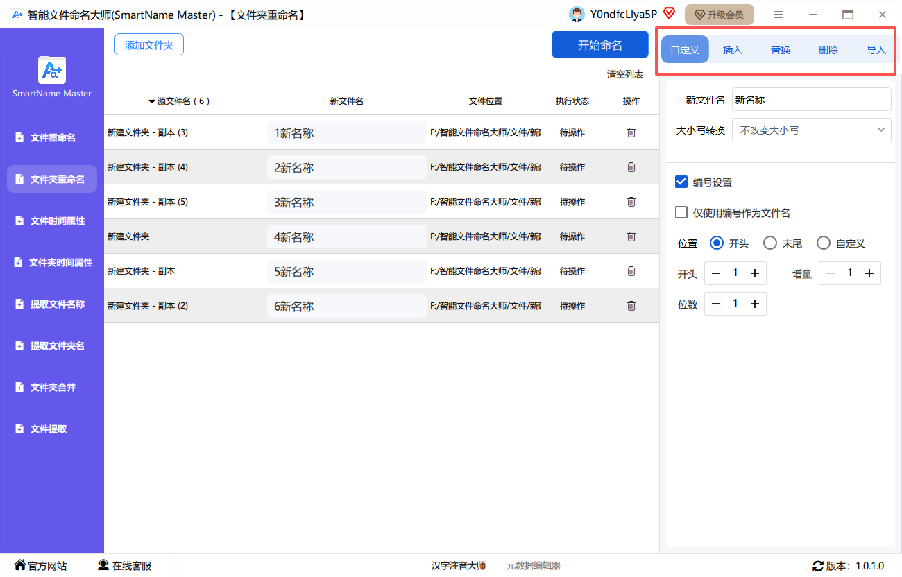 重命名文件/文件夹的方式有四种,包括自定义、插入、替换、删除,导入。根据自己的需求选择。